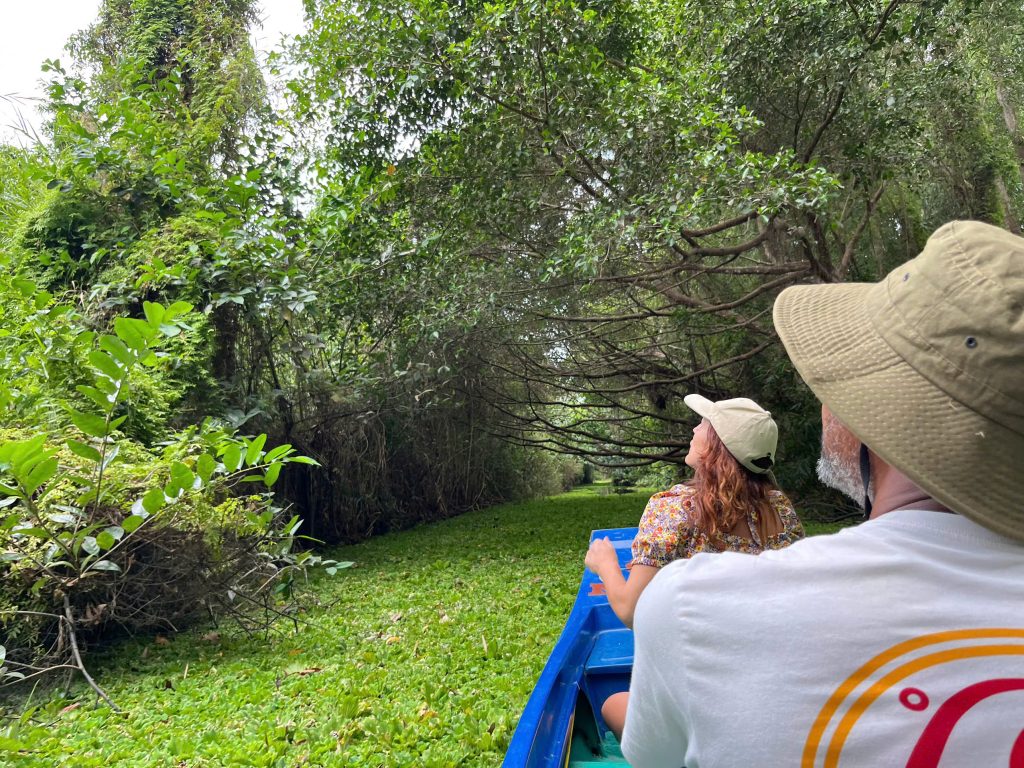 Here, you’ll explore the reserve by small boat, gliding gently through narrow canals covered with water hyacinths and surrounded by flooded forest. The landscape of reeds, palms, and mangroves creates a truly immersive and tranquil atmosphere. As you go deeper into the reserve, natural sounds take over — birds calling, leaves rustling, and water flowing — offering a rare glimpse into the wild side of the Mekong Delta.