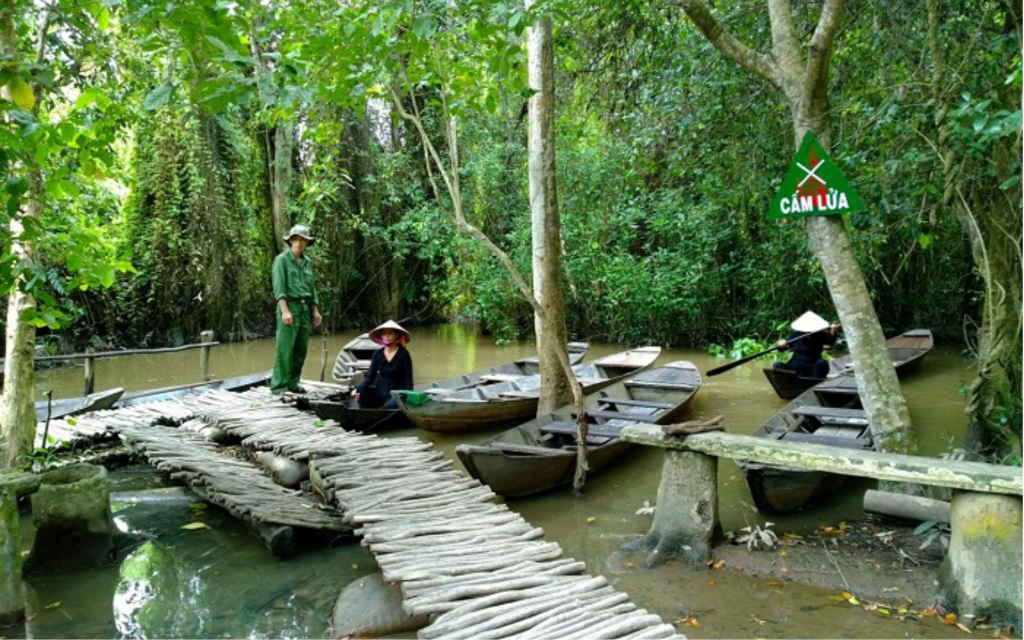 Arrive at Xeo Quyt Cajuput Forest, where nature and history come together. Board a traditional sampan and glide quietly through narrow canals hidden deep inside the cajuput forest. Once a revolutionary base, this peaceful area now offers a tranquil atmosphere filled with birdsong and lush greenery.
